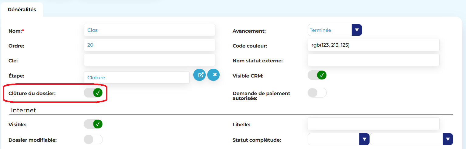 Il est possible de clôturer automatiquement un dossier en fin d’instruction, la clôture pouvant se faire sur plusieurs statuts.
