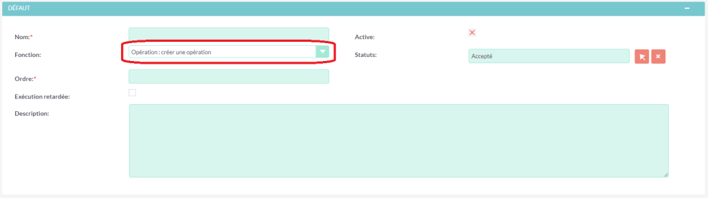 - Dans le sous-panel Action statut, cliquez sur le bouton Créer