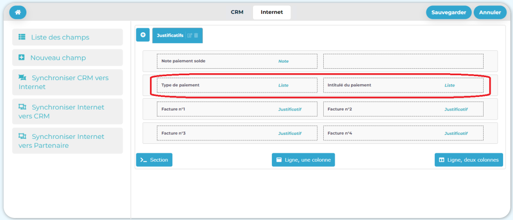 - Synchronisez la vue internet vers la vue CRM et personnalisez cette dernière si besoin