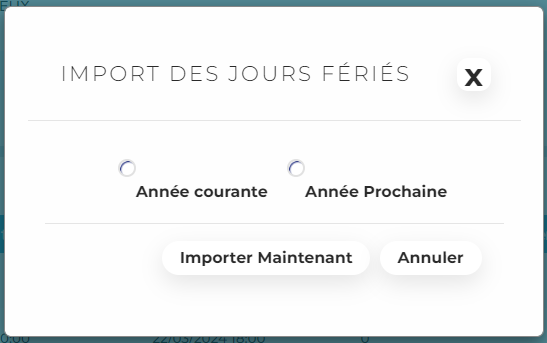 - Cliquez sur Importer les jours fériés