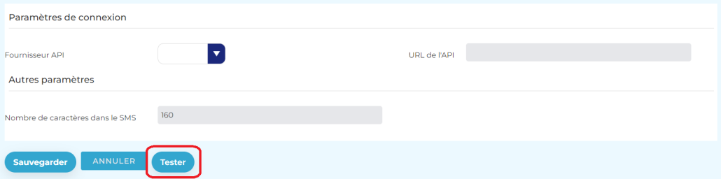 - URL de l’API : URL fournie par votre opérateur télécom pour accéder à la plateforme d’envoi de SMS