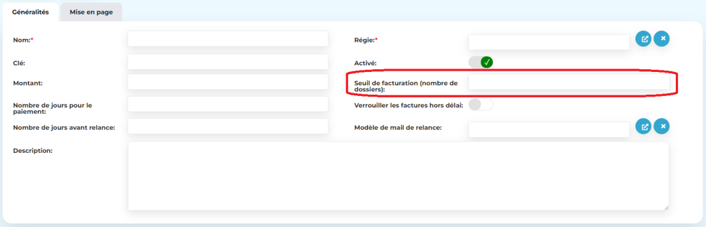 • Seuil de facturation (nombre de dossiers) : permet de gérer la gratuité d’un service lors du ou des premiers usages avant de le rendre payant pour les suivants.