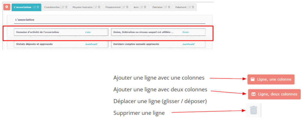 Gérer les onglets, sections et les lignes d’un modèle de dossier