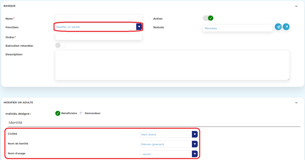 - Bénéficiaire : s’il est sélectionné, l’action met à jour l’individu désigné comme bénéficiaire du dossier