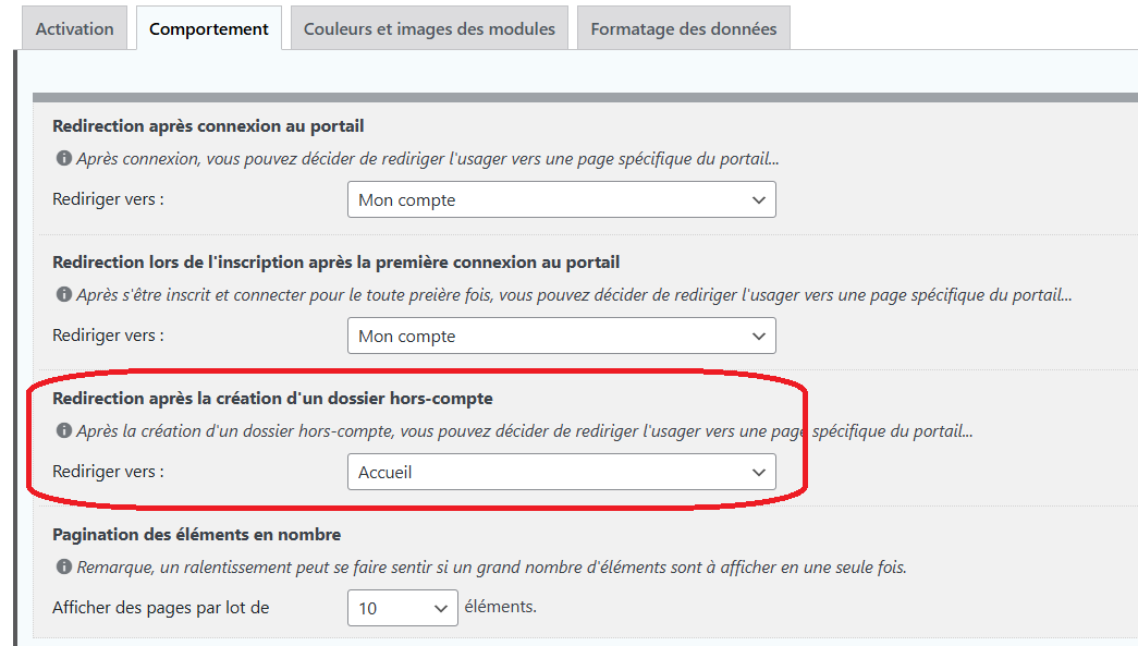 Rediriger l’usager vers une page spécifique après un dossier hors compte
