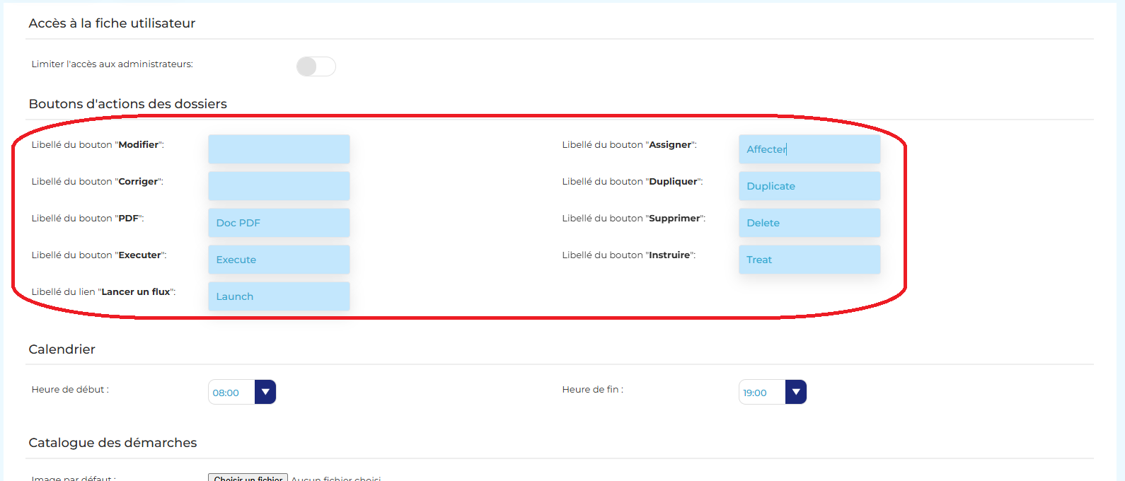Il est possible de renommer tout ou partie des boutons d’actions affichés dans un dossier.