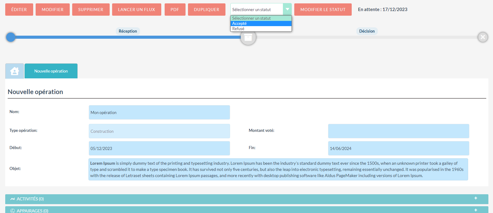 - Et enfin d’autres saisies directement dans le CRM au travers d’un workflow de validation.