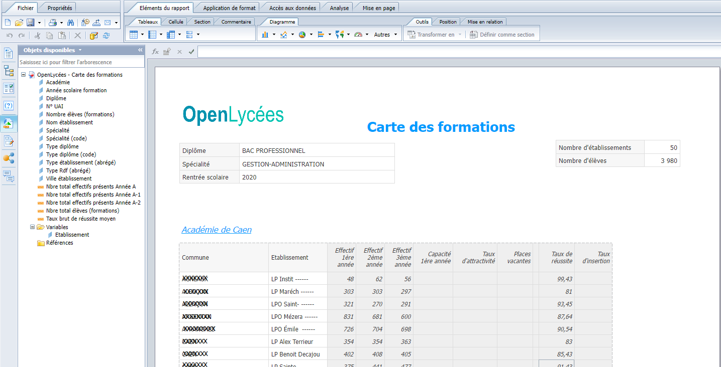Le module permet d’agréger de nombreuses informations sur chaque établissement scolaire :